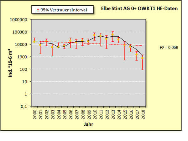 Zwischenzeitlich hat sich dies geändert. Nachdem die Fangmengen der Fischer ernstzunehmende Hinweise auf einen Rückgang des Stintbestands in der Tideelbe gaben, beauftragten wir eine Analyse verschiedenster Daten, um Rückschlüsse auf die Entwicklung der Stintpopulation in der Tideelbe und ihre Ursachen zu ziehen und Empfehlungen zur Förderung des Stintbestands zu geben.